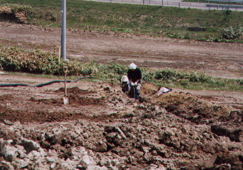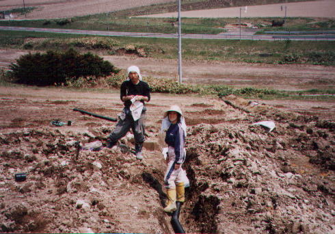 暗渠工事 畑にたまった水分を排出するために暗渠を埋めます。